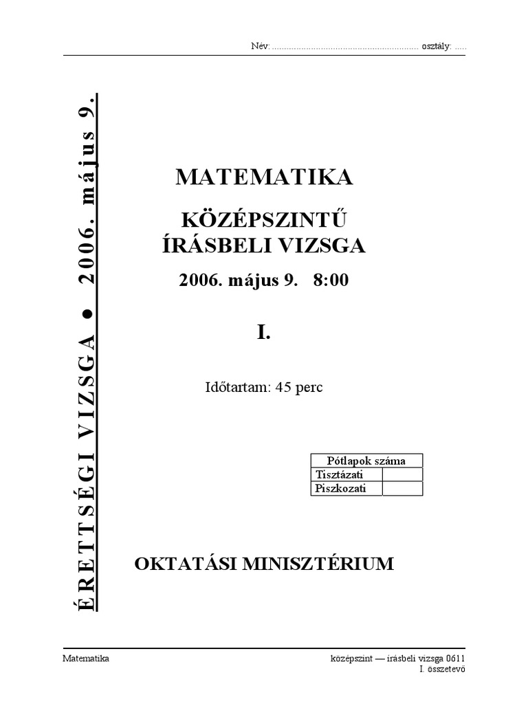 Matematika Erettsegi Majus 06 Kozepszint I Pdf Ingyenes Letoltes