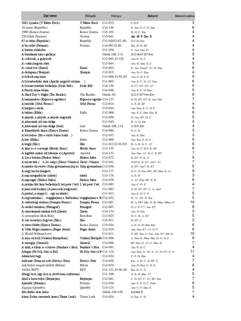 Repertoar Magyar Popzene Vokal Akkord Band