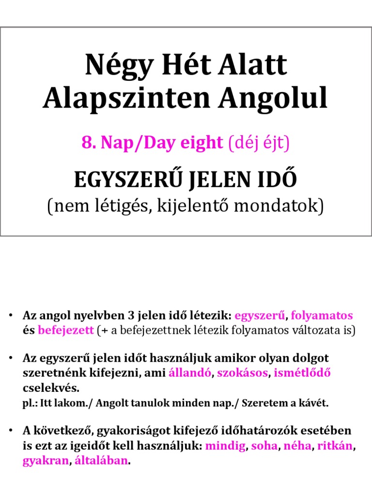 Negy Het Alatt Alapszinten Angolul 8 Nap